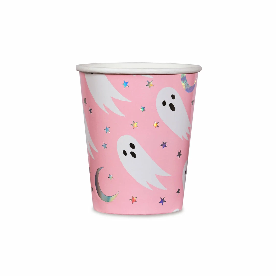 These holographic silver foil and neon coral halloween ghost cups are seriously spooky (in the cutest way ever)
