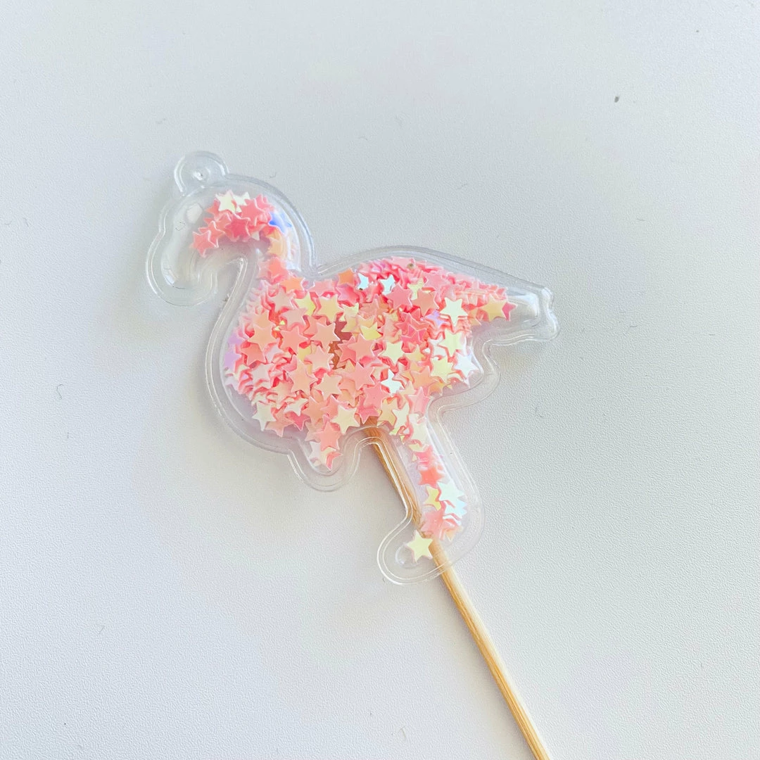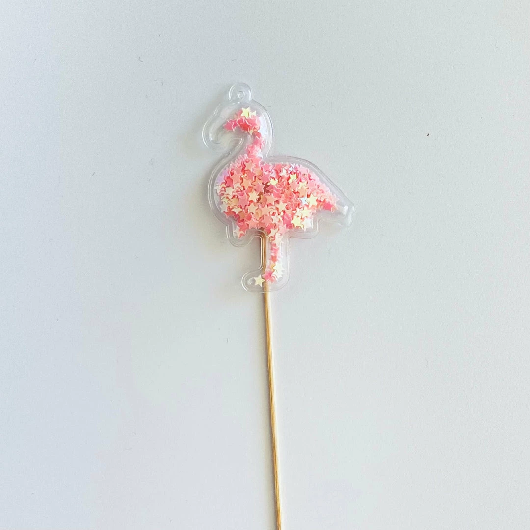 Size: 18cm high incl stick. 7 x 5cm flamingo.