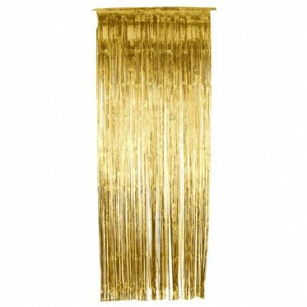 Package includes a shiny foil fringe curtain.