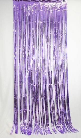 Package includes a shiny foil fringe curtain.