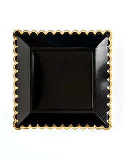 The solid black color have a sophisticated look due to the gold trim around a scalloped edge.