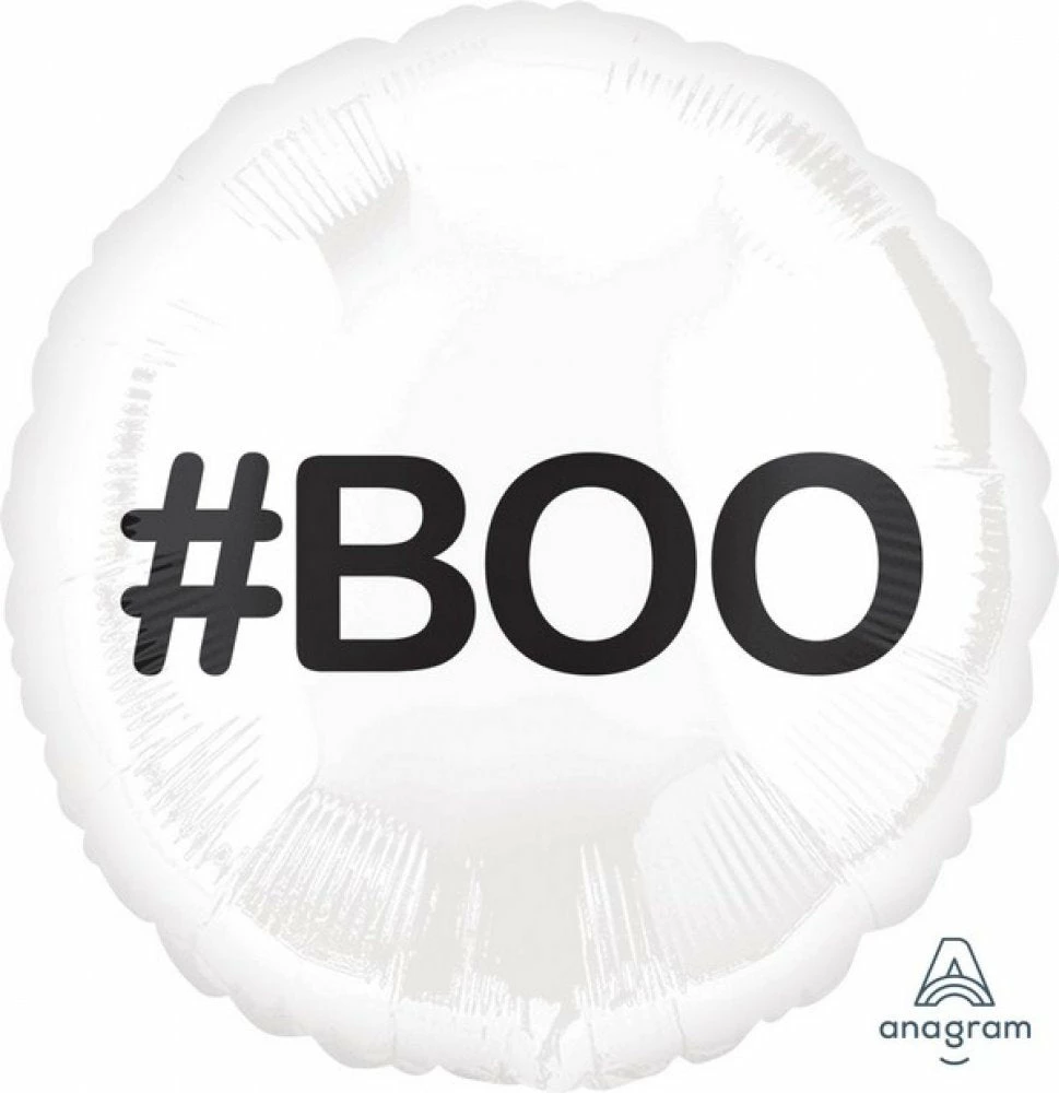 Package includes 1 Foil Balloon with Emoticon Ghost face on one side, #BOO script on reverse. The perfect decoration for your Halloween Celebrations.