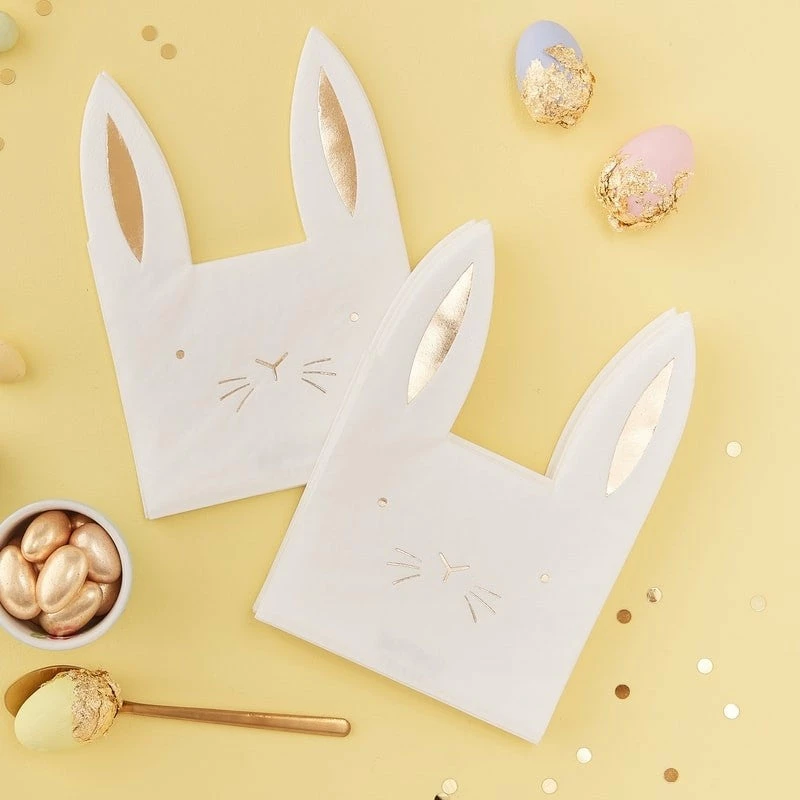 These adorable gold foiled bunny shaped napkins are suitable for any Easter celebration or bunny themed party,