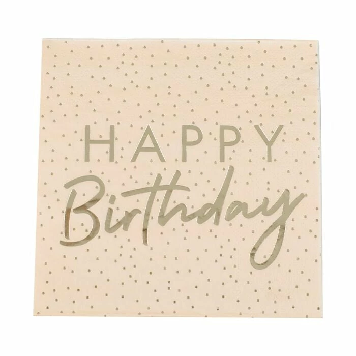 These super pretty napkins have an on-trend polka dot design which adds a touch of class, as well as ‘Happy Birthday’ printed in gold foil.