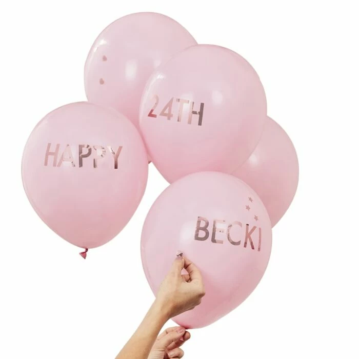 Each pack contains 5 x 30cm latex balloons with 12 rose gold metallic letter and number sheets to add your own personal word or message.