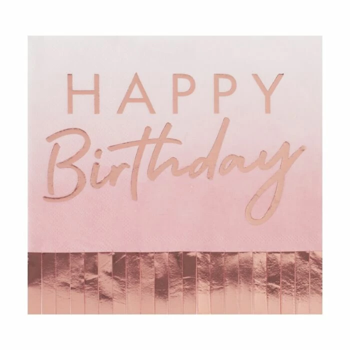 Featuring rose gold fringe, these on trend pink and rose gold napkins will shimmer and shine on your party table.