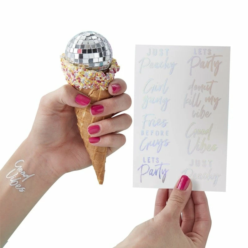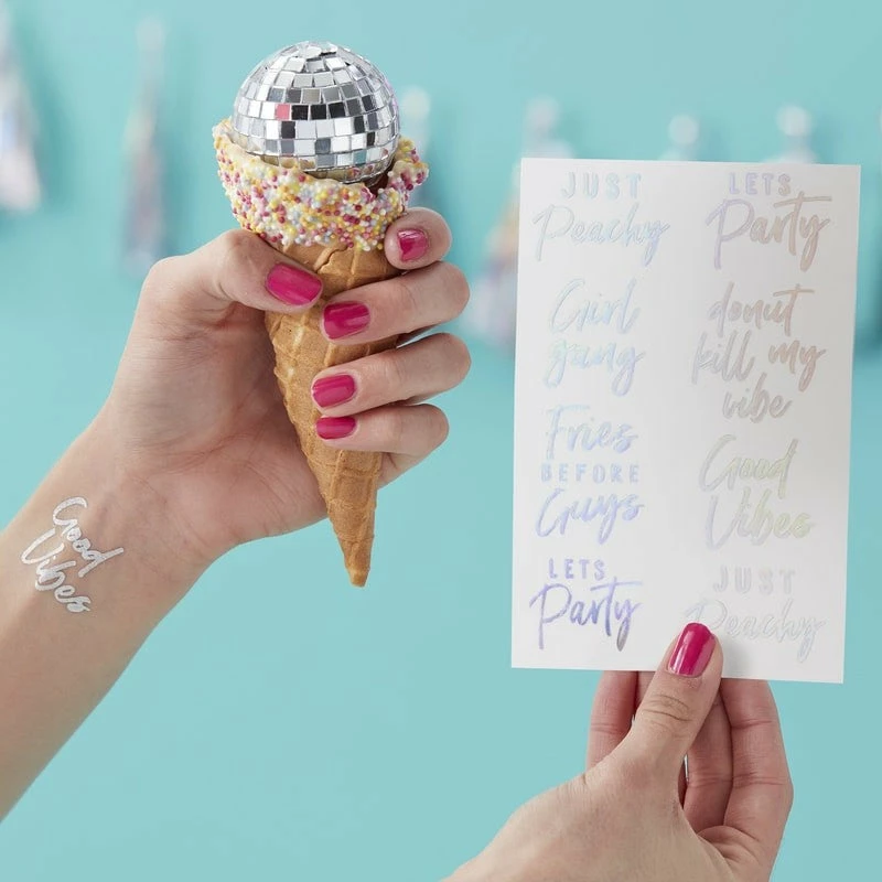 Iridescent foiled temporary tattoos are perfect fun for any celebration or party.