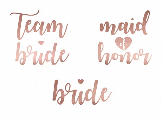 Each pack contains 13 temporary tattoos measuring 4cm (W) x 2-4cm (H). Inscriptions: bride (2 pcs), maid of honor (2 pcs) and team bride (9 pcs).