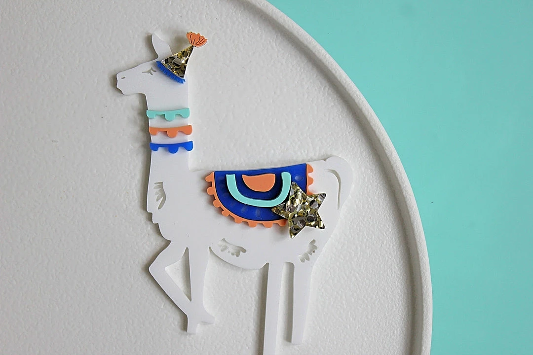 Made from light weight acrylic and topped with laser cutting and 3D detailing this super cute Llama will be one of your favourite party guests.