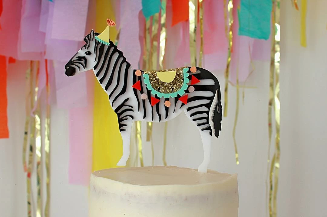 Made from light weight acrylic and topped with laser cutting and 3D detailing this super FUN ZEBRA will be one of your favourite party guests.