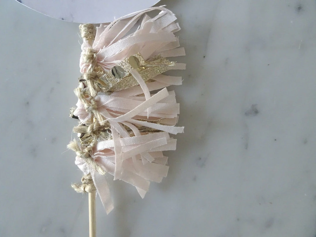5 x natural tones fabric tassels hung on twine, 5cm in height each.