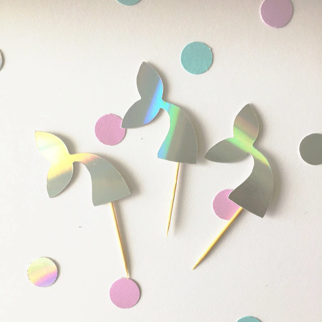 Package includes 12 x Handcrafted Iridescent Cupcake/Food Toppers.