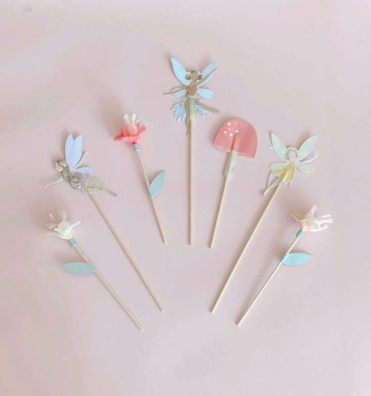 The set features 7 toppers in 7 designs, including fairies, a mushroom and flowers.