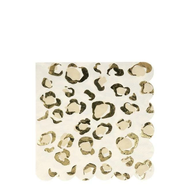 Pack contains 16 x Safari Animal Print napkins, featuring four designs, each with a neon print, gold foil details and a stylish scallop edge.