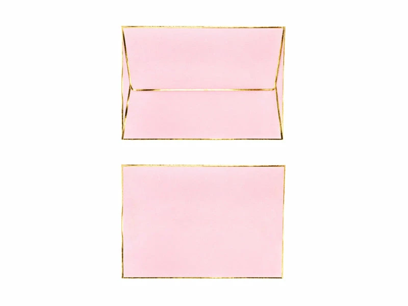 Includes a pastel pink envelope with gold metallic border. Card is blank inside.