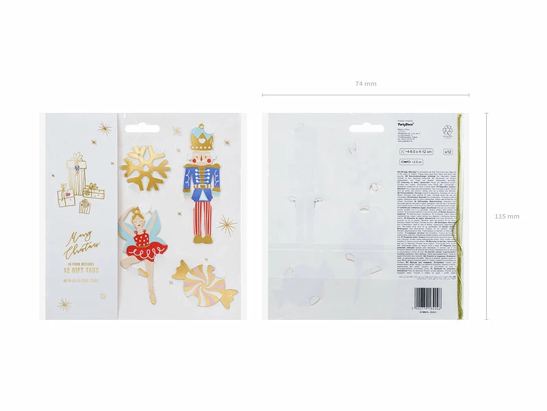 Package includes 12 gift tags made of card stock and 2.5m of gold string.