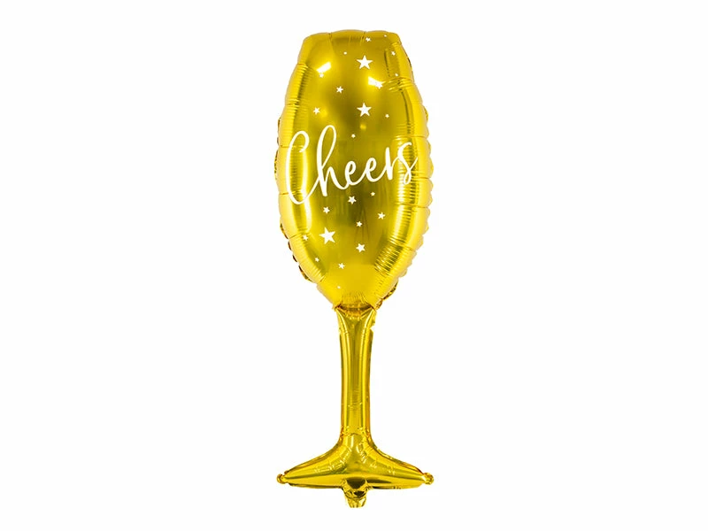 Package includes 1 Champagne Glass Shape Foil Balloon with ‘Cheers’ inscription.