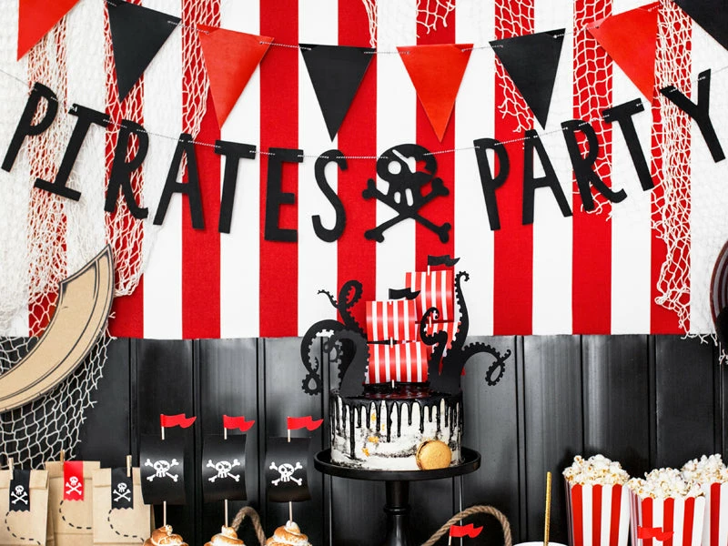 Package includes 1 x Black + Red Pennant Flag Bunting made of card stock.
