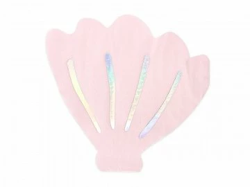 Package includes the cutest little pink seashell paper napkins with iridescent foil print.