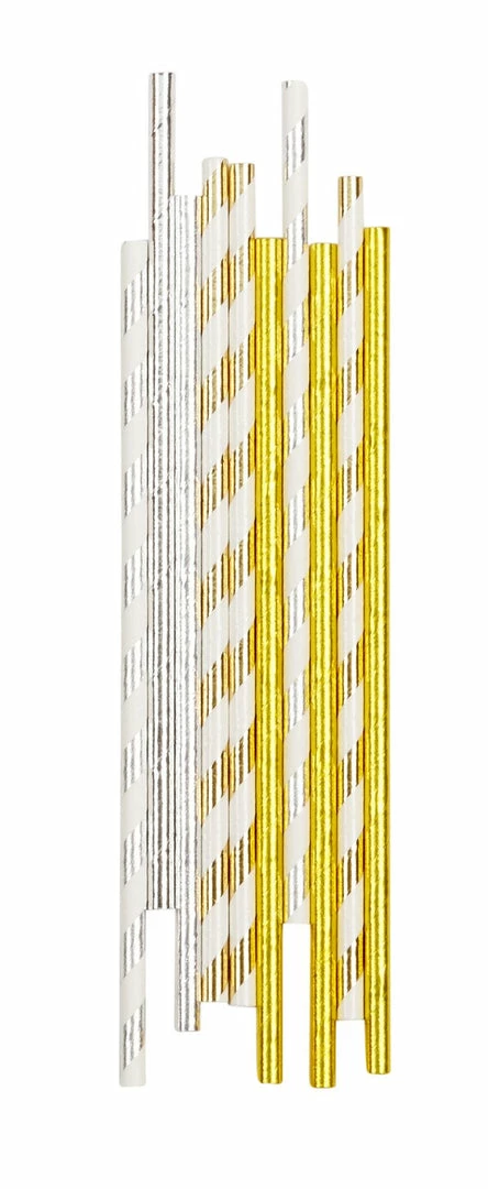Package includes a set of 10 fun paper straws to match our Poppies for Grace Metallics Silver + Gold Foil range.